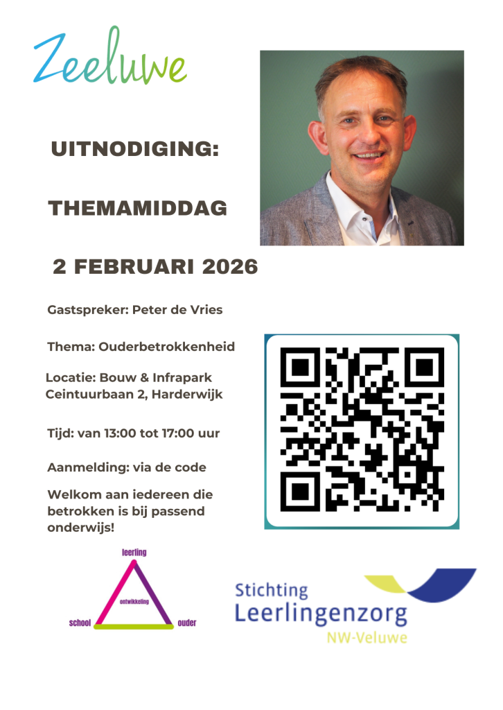 Op maandagmiddag 2 februari a.s. zal een themamiddag gehouden worden met Peter de Vries als gastspreker. Peter houdt zich al meer dan twintig jaar bezig met ouderbetrokkenheid; hij mag als expert gezien worden. Als definitie van ouderbetrokkenheid hanteert Peter de Vries: “Ouderbetrokkenheid is het doelgerichte en actieve samenwerken van de professionals met ouders, gericht op het beter begrijpen van hun kind en het optimaal ondersteunen van zijn/haar ontwikkeling. Het gaat niet zozeer om de betrokkenheid ván de ouders (ouders zijn immers allemaal betrokken op hun eigen manier), maar in hoeverre en hoe je als professional betrokken bent óp de ouders van de kinderen en jongeren met wie je mag werken.”